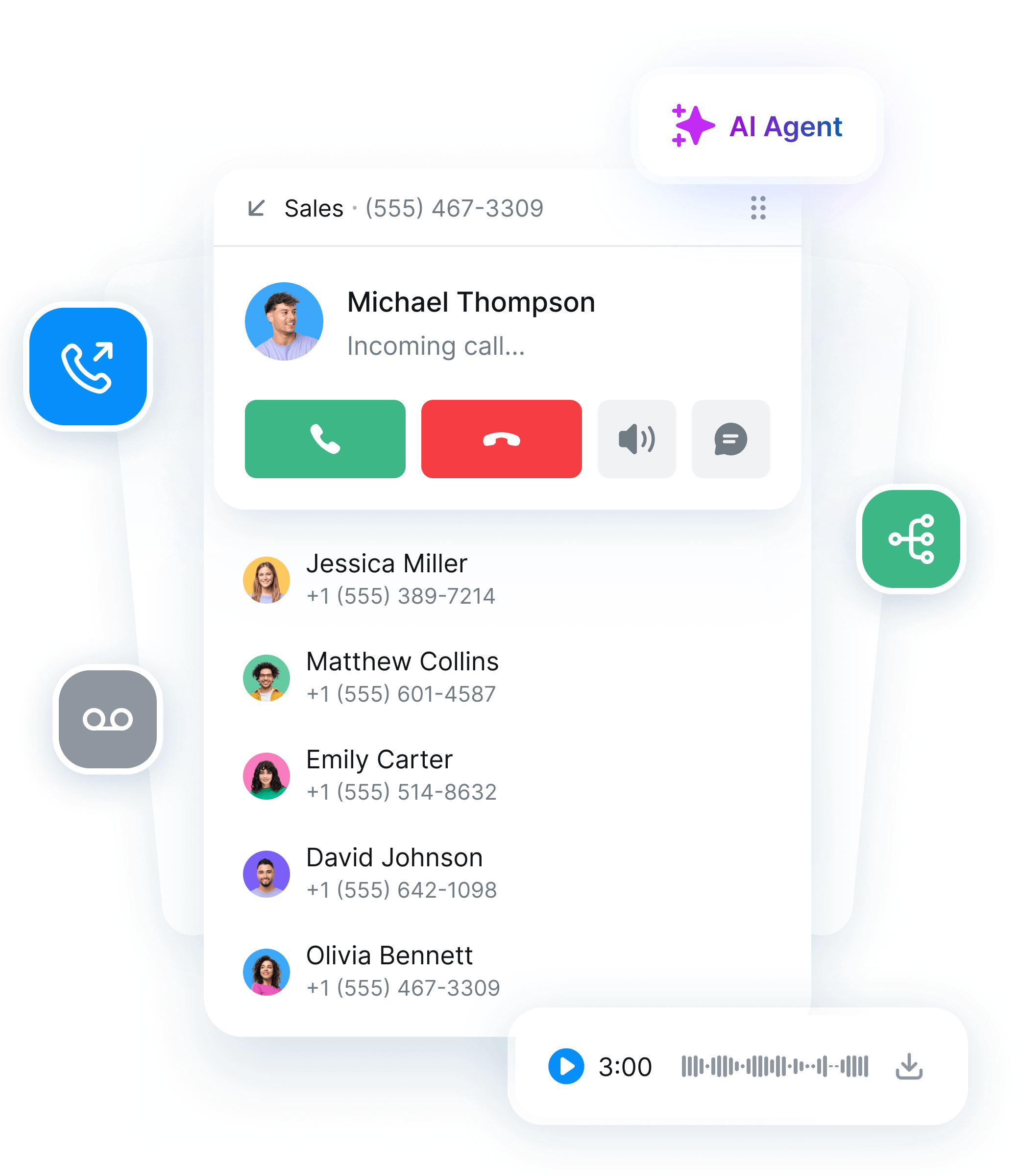 HubSpot, ActiveCampaign, Salesforce, Pipedrive, and 1,000+ tools via Zapier. AI summaries and call logs push directly to your CRM.