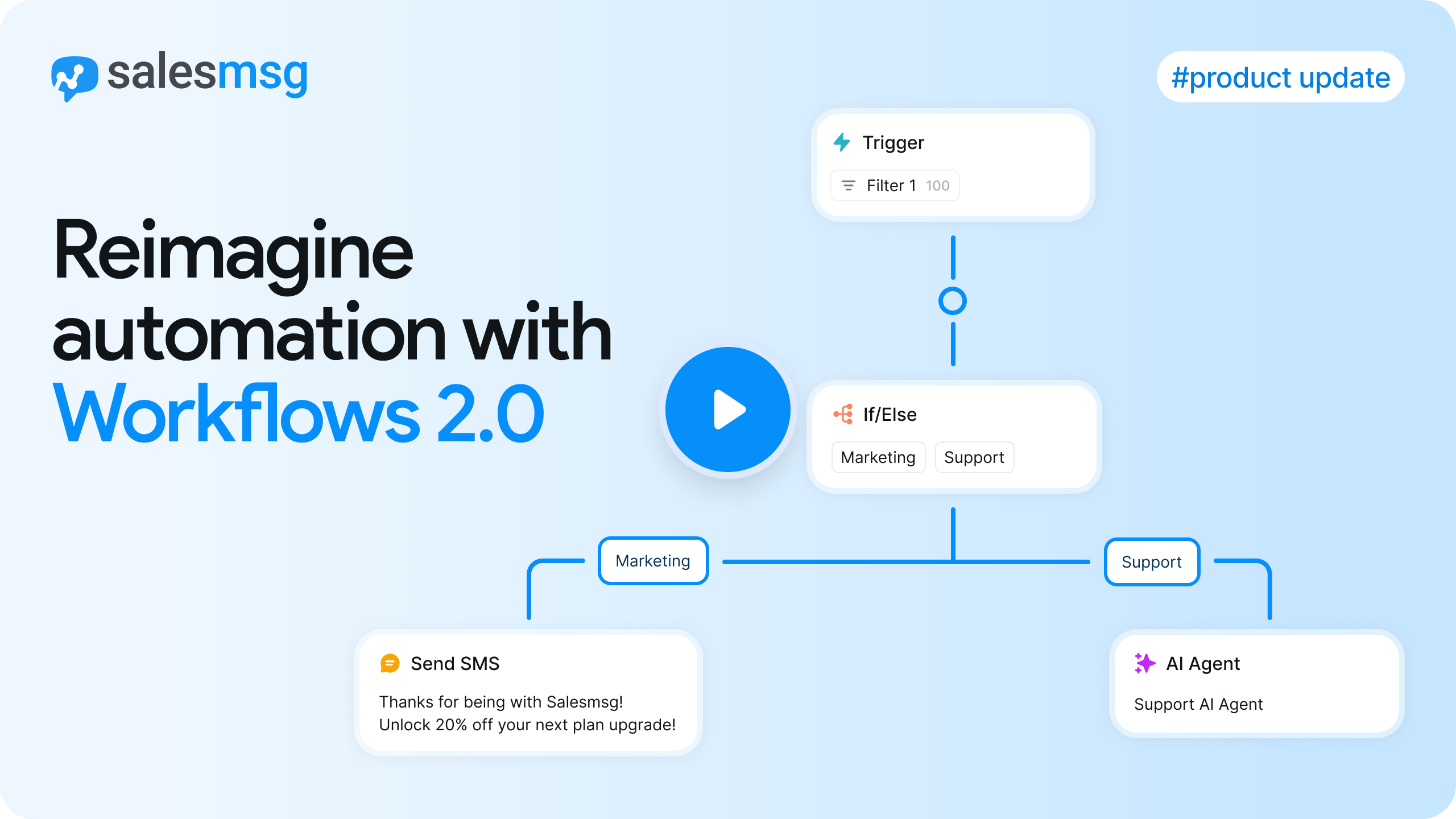 Yeah, we’re looking at Workflows 2.0 today. It’s a new feature set in the Salesmsg platform, and it’s all about really boosting automation.