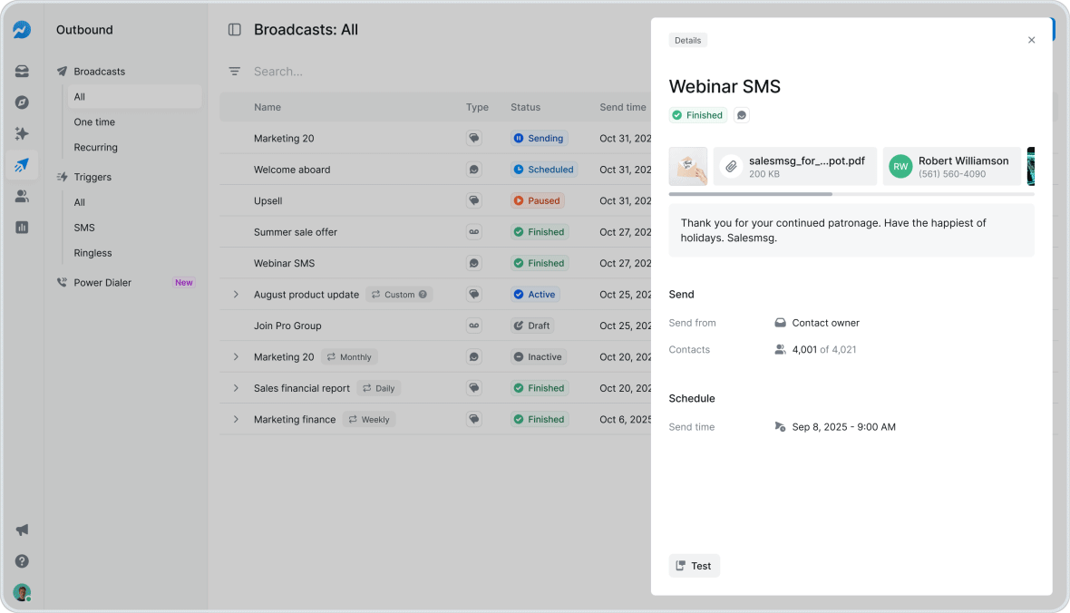 February’s Salesmsg updates let you boost sales, enroll contacts faster, track broadcasts, view RCS stats, and reassign workflows effortlessly.