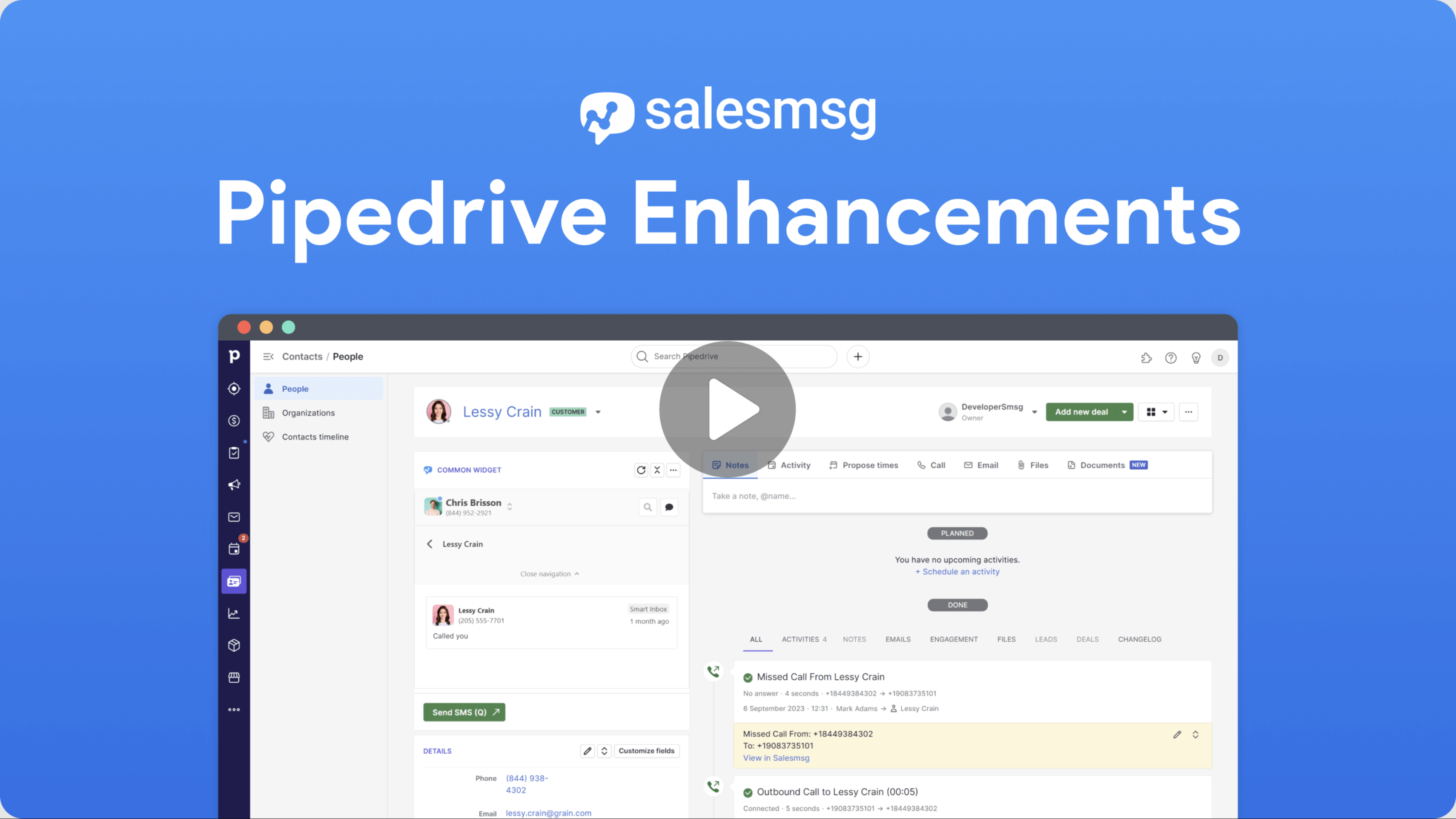 Once integrated, all your Zoho contacts are searchable directly in Salesmsg. So, when sending a new message or making a call, just search for your contact and it will appear under the Zoho CRM tab. Select the contact, and Salesmsg will automatically create and sync it between both systems, keeping everything up to date in real time.