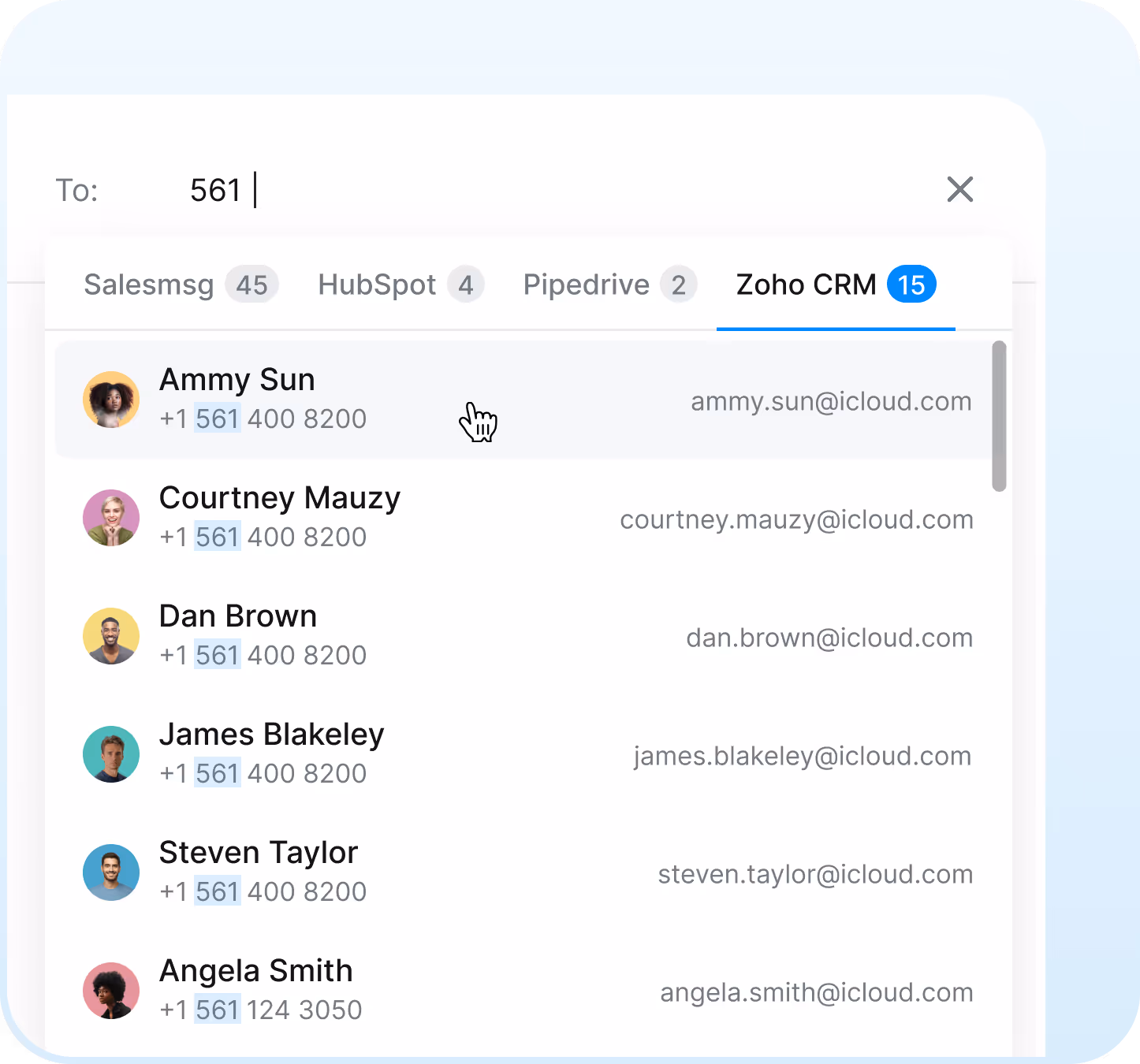 Streamline sales communication by managing all your SMS conversations in Salesmsg while automatically syncing contact details with Zoho CRM. Respond to customers faster and give your sales team complete visibility into every customer interaction.